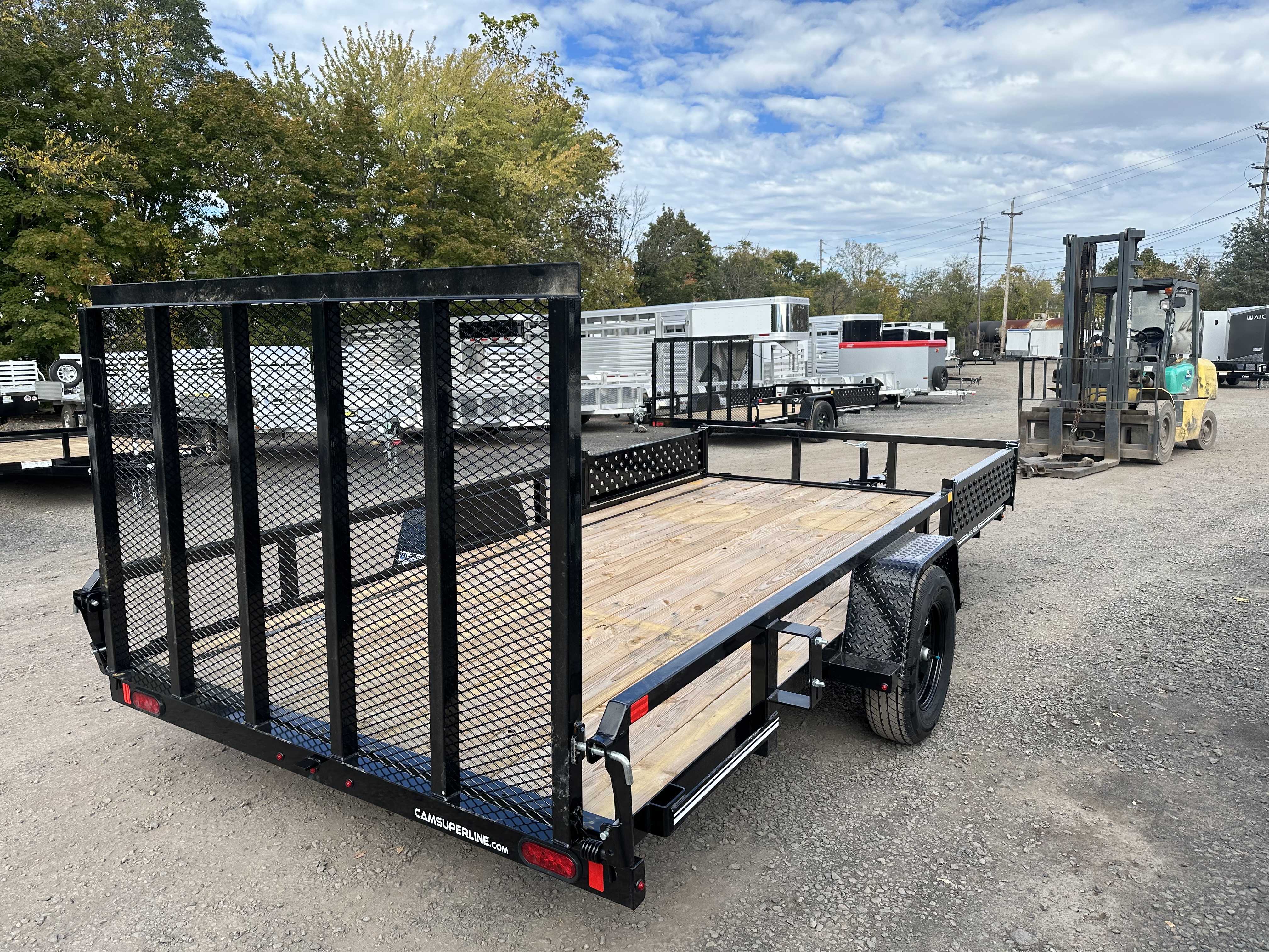 7X12, 2026, CAM Superline Utility Trailer, Tube Top and Uprights, ATV Sides, 4' Gate, Spare Mount, LED Lights, GVWR-2990#, Empty-1370#