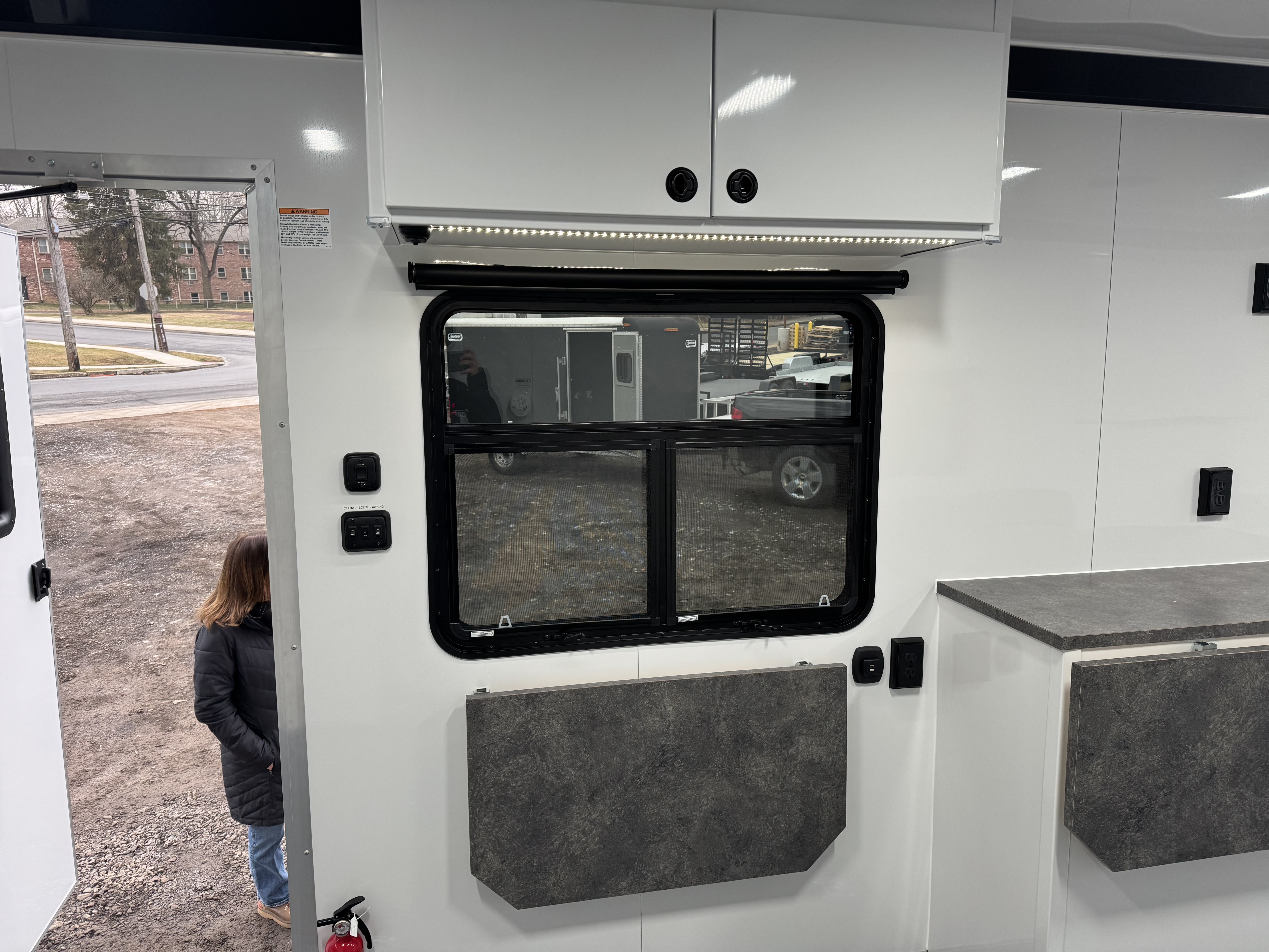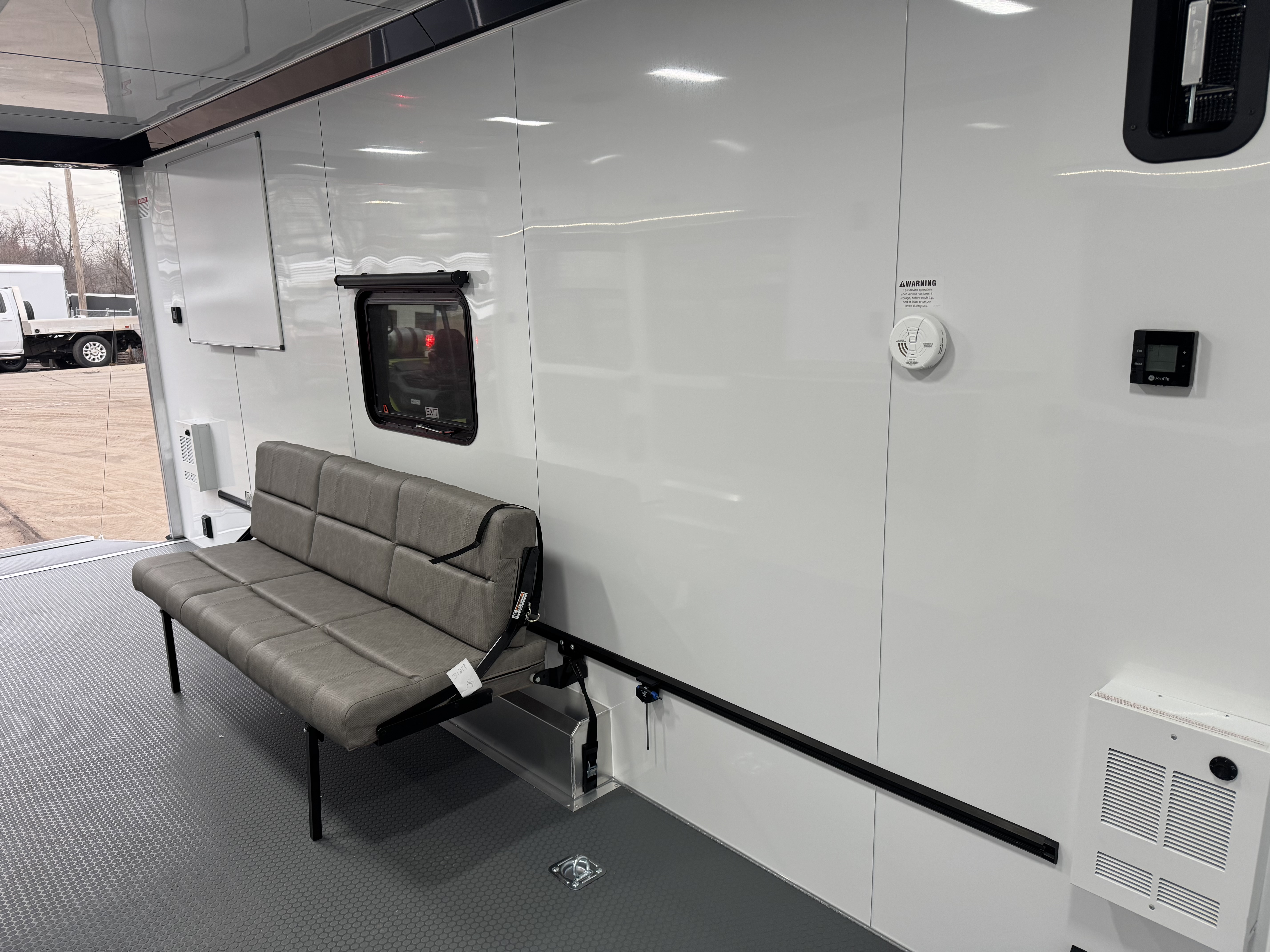 2026 ATC 8.5x24' Pro 300 Mobile Command / Office Trailer. The Pro 300C Office Trailer is a testament to our commitment to providing mobile solutions for professionals constantly on the move. Whether you’re in construction, healthcare, or event management, this mobile office on wheels offers what you need in a transportable workspace. Designed as much for comfort as for utility, this enclosed trailer office comes prepped for a generator and is equipped with heating and air conditioning. This ensures a comfortable work environment regardless of the weather outside. These highly versatile trailers feature configurable furniture with a garage area that can haul UTVs and golf carts. This model in stock is ready for deployment and features a bathroom, kitchenette, full generator prep, and plenty of workstations! If this doesn't fit your needs, feel free to reach out and work with one of our custom trailer specialists to get you the perfect trailer for your usage.