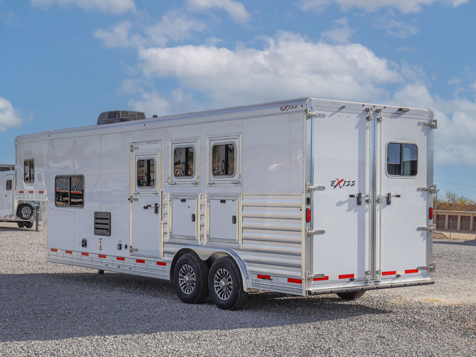 - LED interior lighting standard in Exiss trailers provide a bright and safe loading environment for horses, as well as a brighter space in the living quarters interior. In addition, long lasting LED lights are more efficient and require minimal upkeep.
