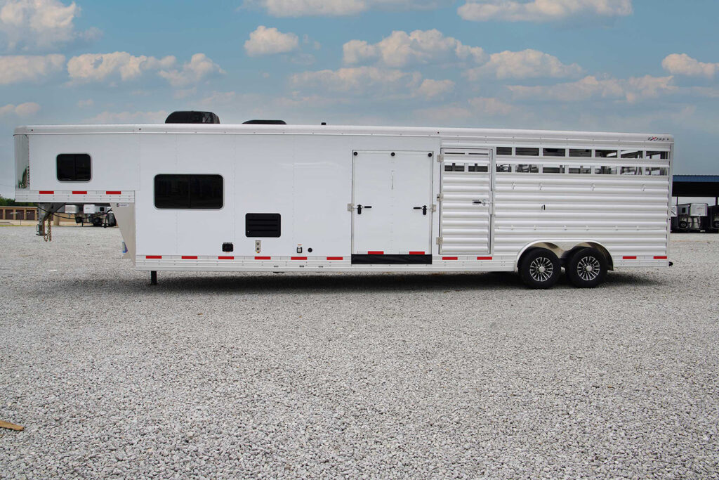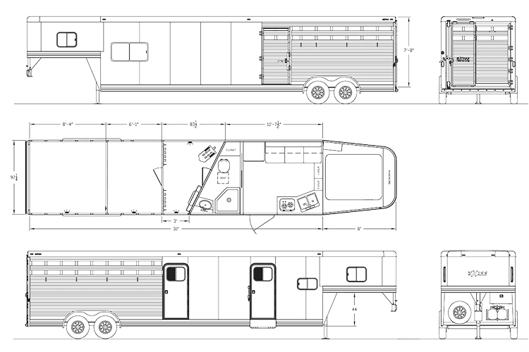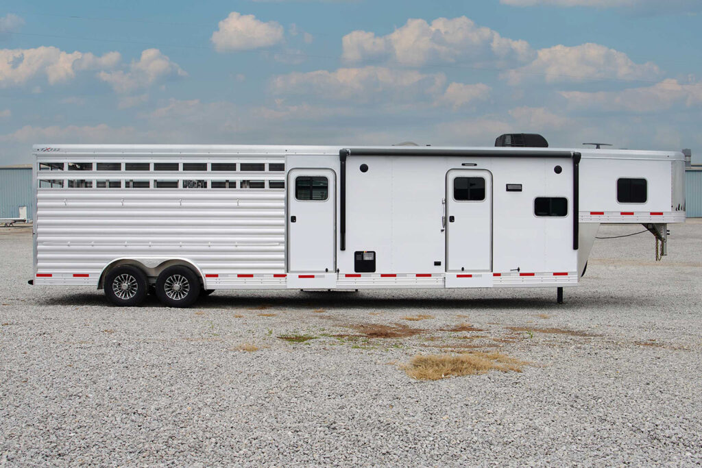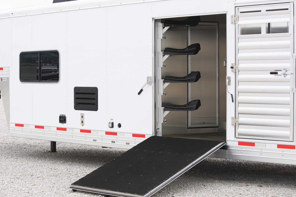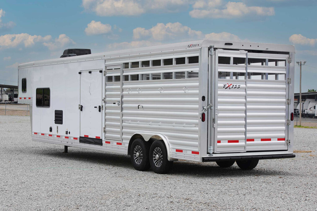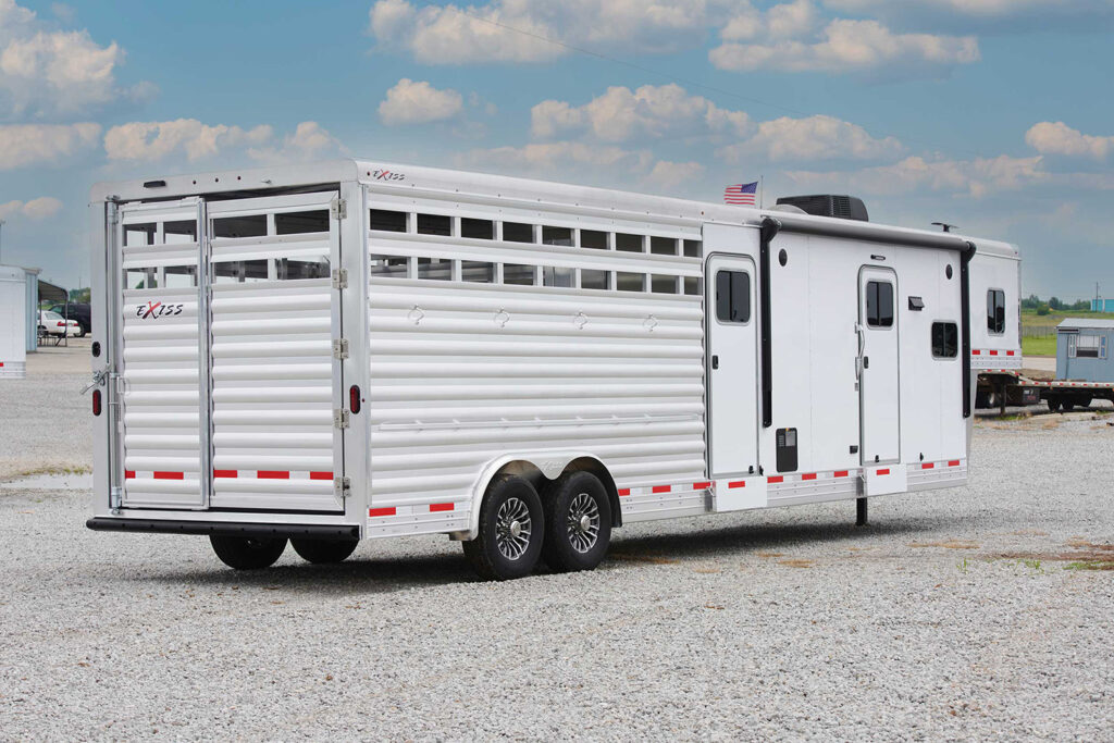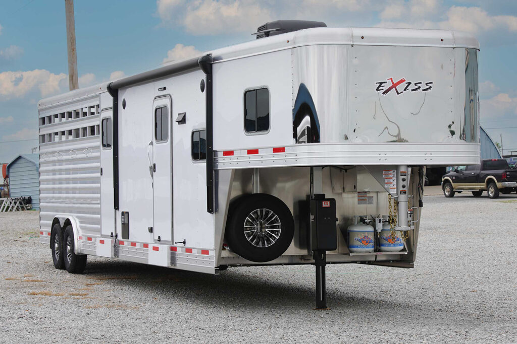 An 8′ wide stock combo living quarters trailer from Exiss gives you all of the rugged features of our stock trailer lineup with the added benefits of our popular living quarters models. Each model is a full 8′ wide and features the horse/livestock area, a mid tack with plenty of storage and quality-built interiors. You can select from our Brownstone Latte, Glacier Ash or Urban Saddle interior decor package. With the sturdy construction of our stock area and the comfort and design of our Exiss Interiors, it’s easy to see why these trailers are such a versatile and dependable trailer!