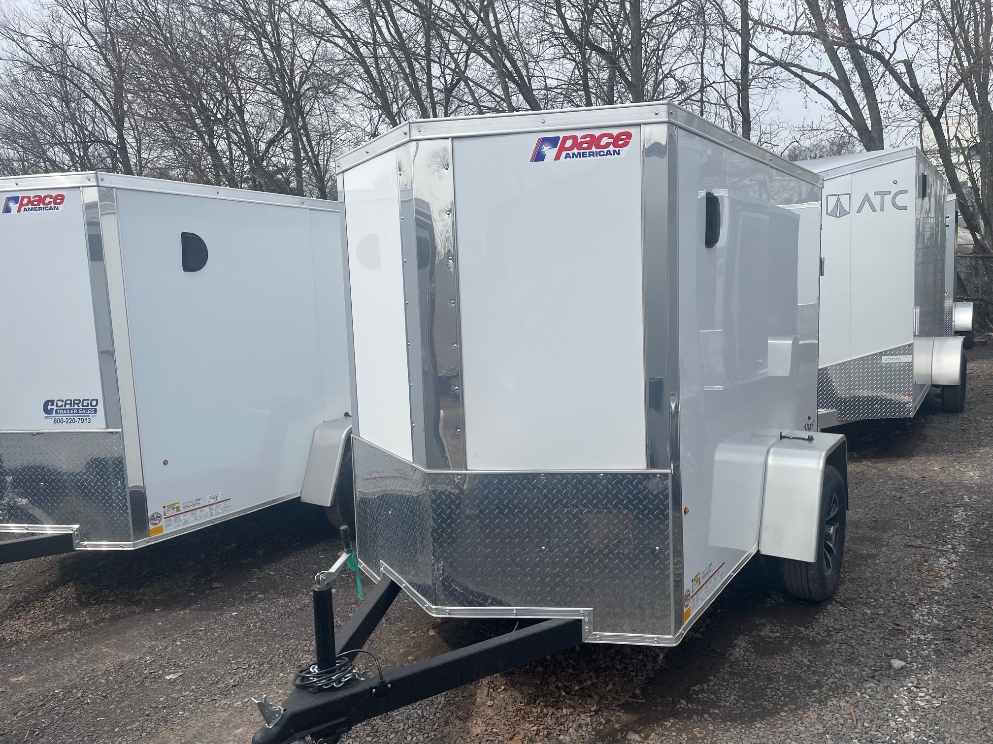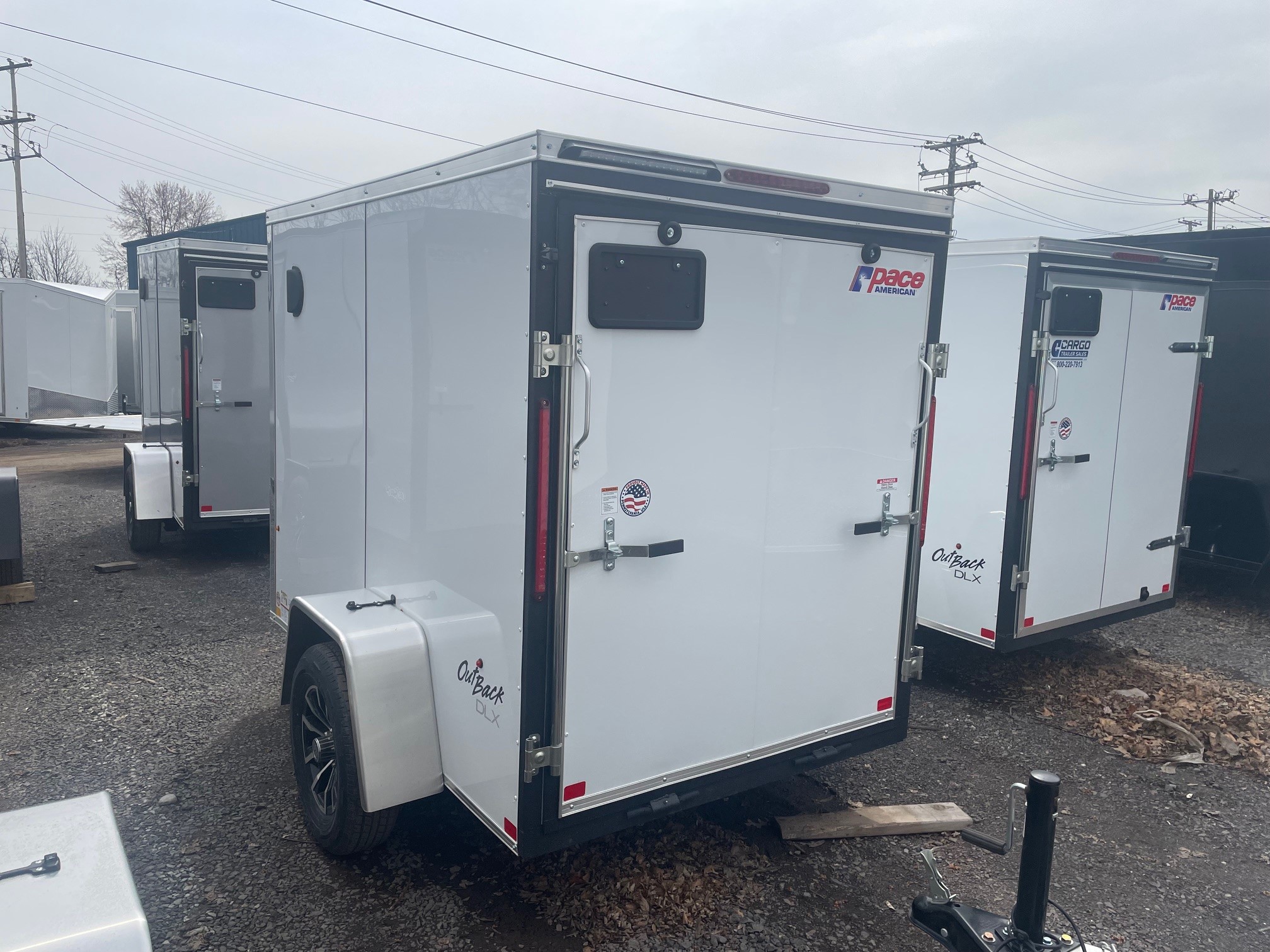 The Outback DLX is our Entry level model from Pace American. It’s great for lighter duty use which makes it a great fit for homeowners and other light duty applications. The Outback has standard features such as 24” on center framing, 0.030 exterior aluminum, color matching exterior screws, a one piece roof and a 3 year warranty. The Outback is our economical, yet reliable enclosed trailer offering to keep you on the road without breaking the bank. 5x8+2, White, 2026 Pace Aerican Outback DLX, Ramp Door, Aluminum Wheels, Composite Exterior, Loading Light w/ Switch, GVWR2990#, Empty-1091#