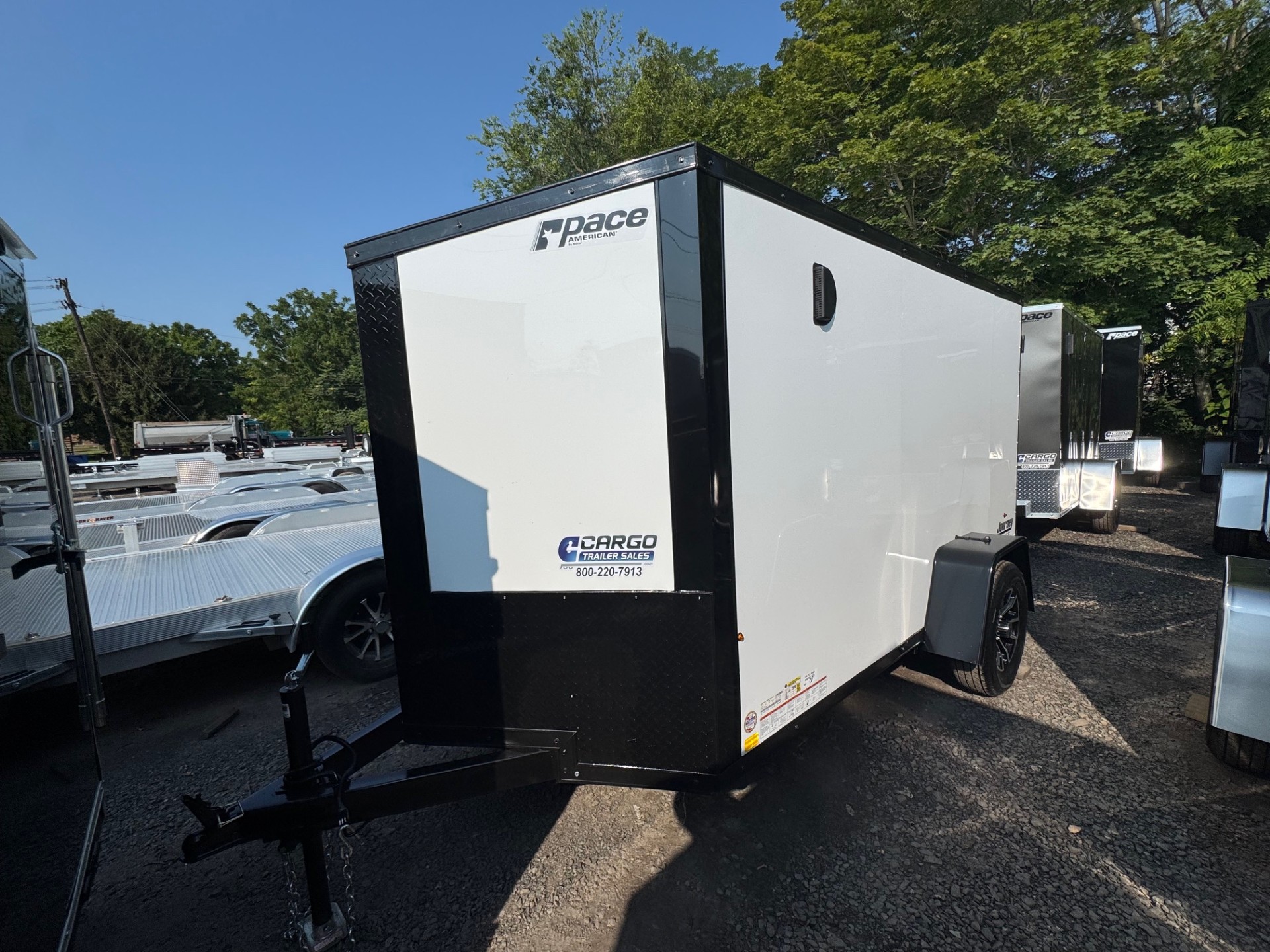 The Journey SE is our Mid-grade offering from Pace American. It is built with a lot of the same features that you will find on higher end models at a more affordable price. These features include 16” on center floor joists and full tube steel wall studs, a one piece aluminum roof, screw-less exterior, and a 3 year warranty. The Journey is the model that we recommend for lighter commercial use, or someone who is looking for the nicer looks of the screw-less sides and added support of the additional framing without breaking the bank. 2025 Pace American Journey SE, 5x10, White with Black Trim, Ramp Door, Empty Weight 1183, GVWR, 2990