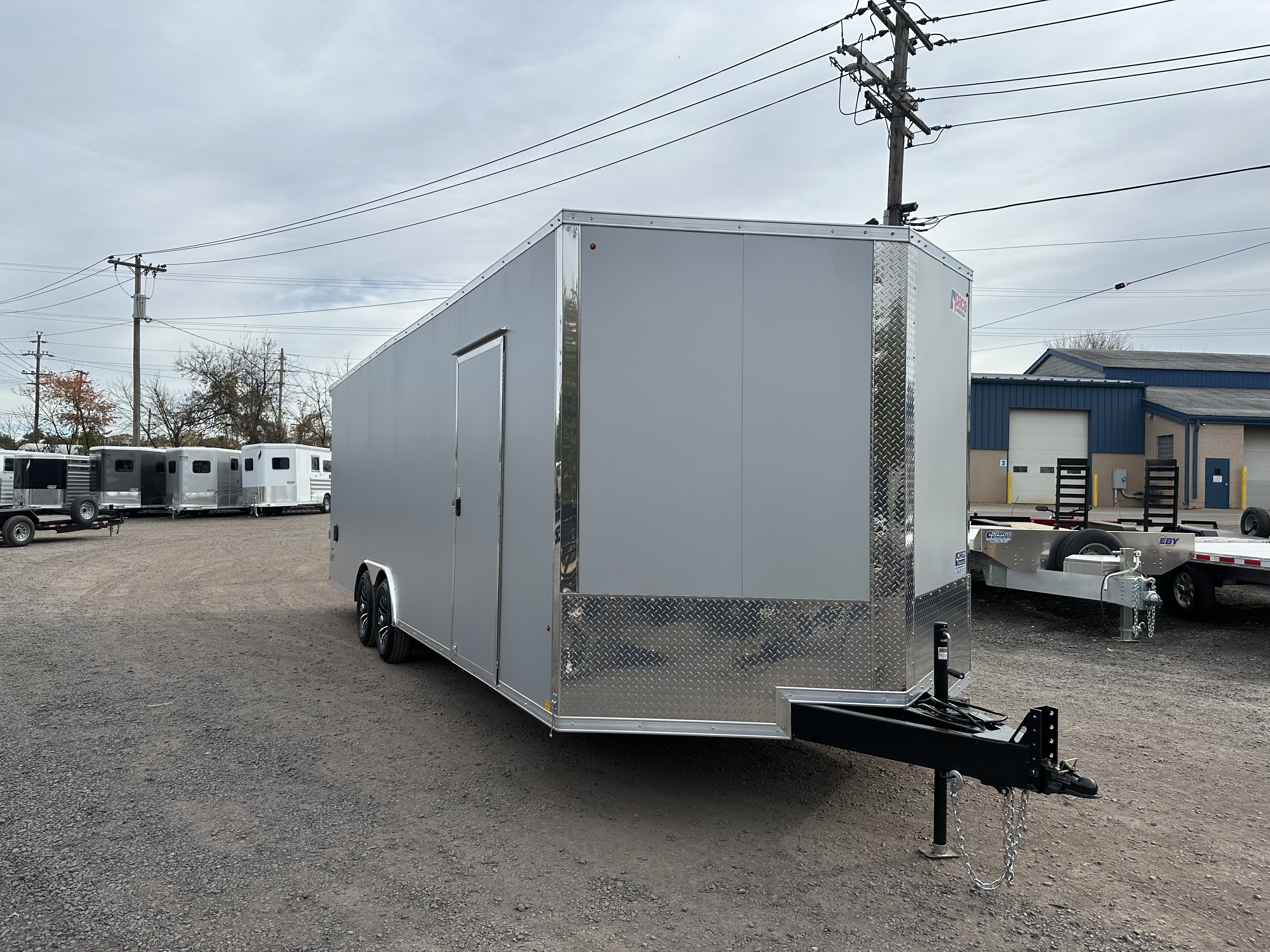 The Journey SE is our Mid-grade offering from Pace American. It is built with a lot of the same features that you will find on higher end models at a more affordable price. These features include 16” on center floor joists and full tube steel wall studs, a one piece aluminum roof, screw-less exterior, and a 3 year warranty. The Journey is the model that we recommend for lighter commercial use, or someone who is looking for the nicer looks of the screw-less sides and added support of the additional framing without breaking the bank. 8.5x24+2, Blackr, Pace American Journey SE Car Hauler, Ramp Door, Side Door, Upgraded Composite Sides, Aluminum Wheels, and Rear Flare w/ LED Loading Lights, GVWR-9900#, Empty-3578#