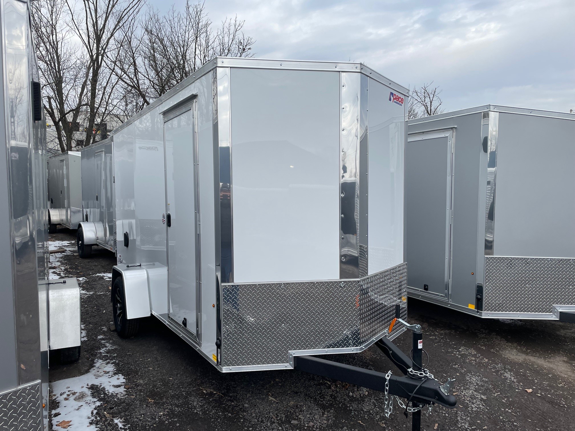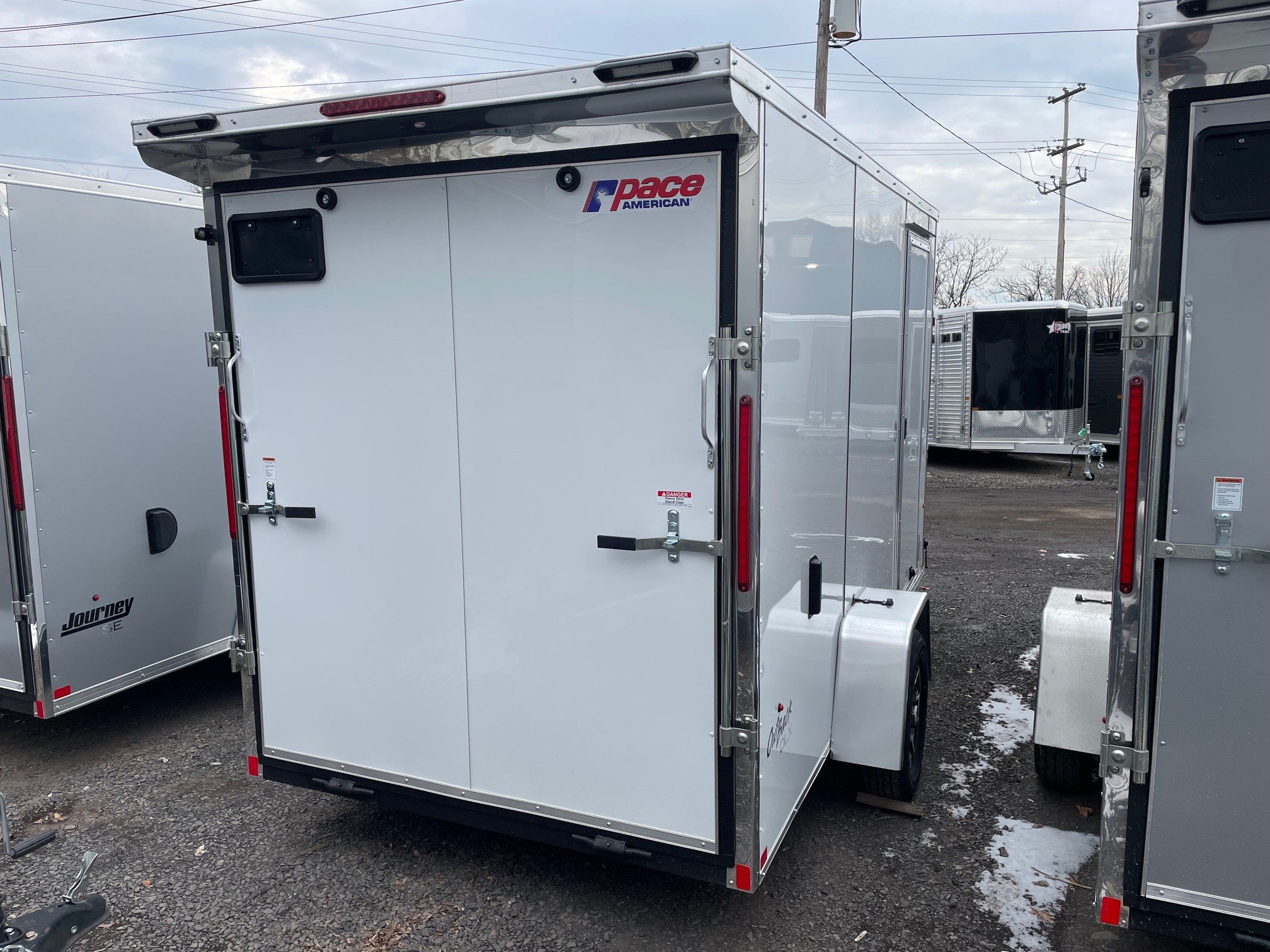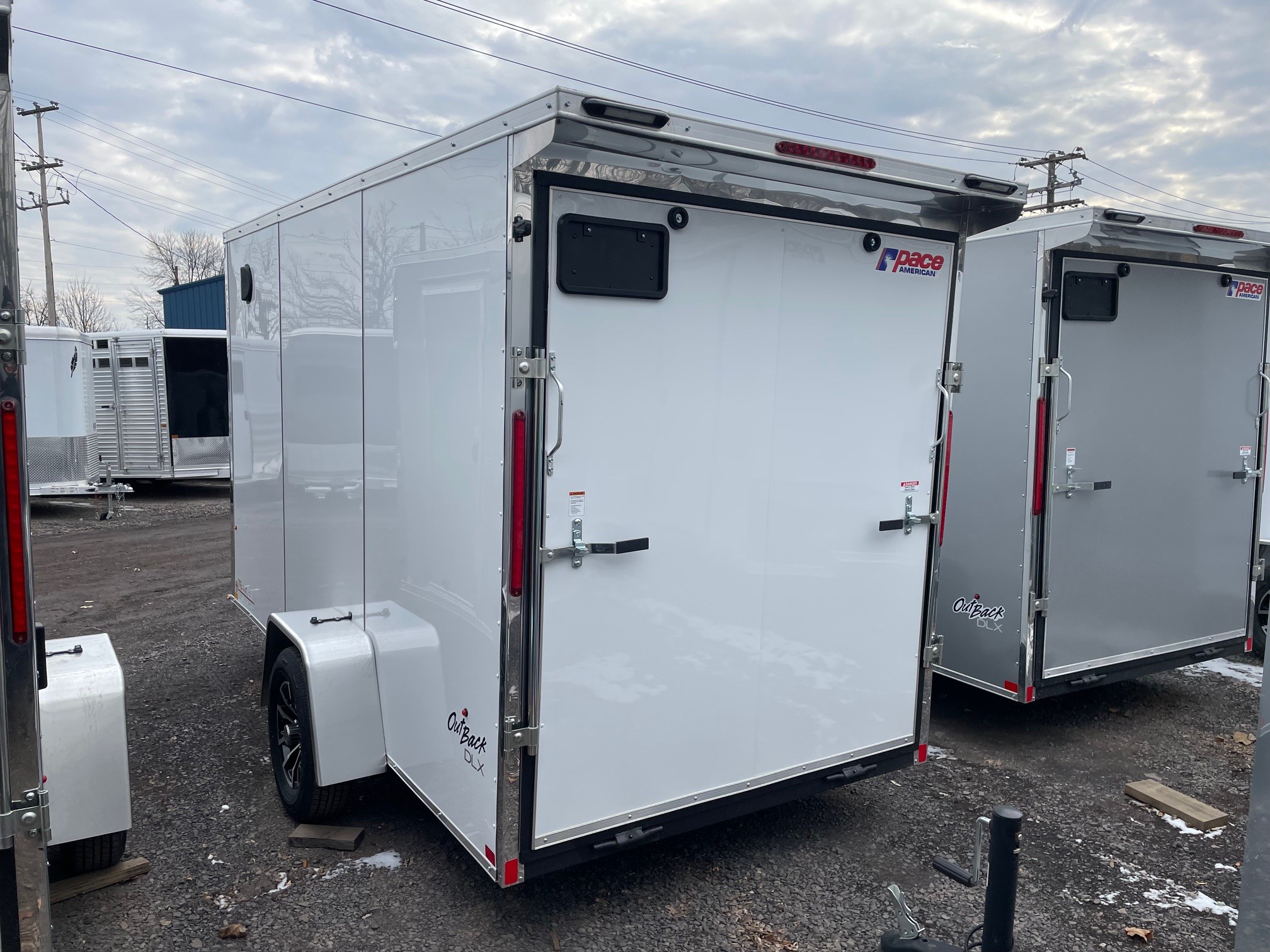 The Outback DLX is our Entry level model from Pace American. It’s great for lighter duty use which makes it a great fit for homeowners and other light duty applications. The Outback has standard features such as 24” on center framing, 0.030 exterior aluminum, color matching exterior screws, a one piece roof and a 3 year warranty. The Outback is our economical, yet reliable enclosed trailer offering to keep you on the road without breaking the bank 6x12+2, White, 2026 Pace American Outback DLX, Ramp Door, Side Door, Upgraded Composite Exterior, Rear Flare w/ Loading Lights, Aluminum Wheels, 16" on Center Wall Posts, GVWR-2990#, Empty-1549#