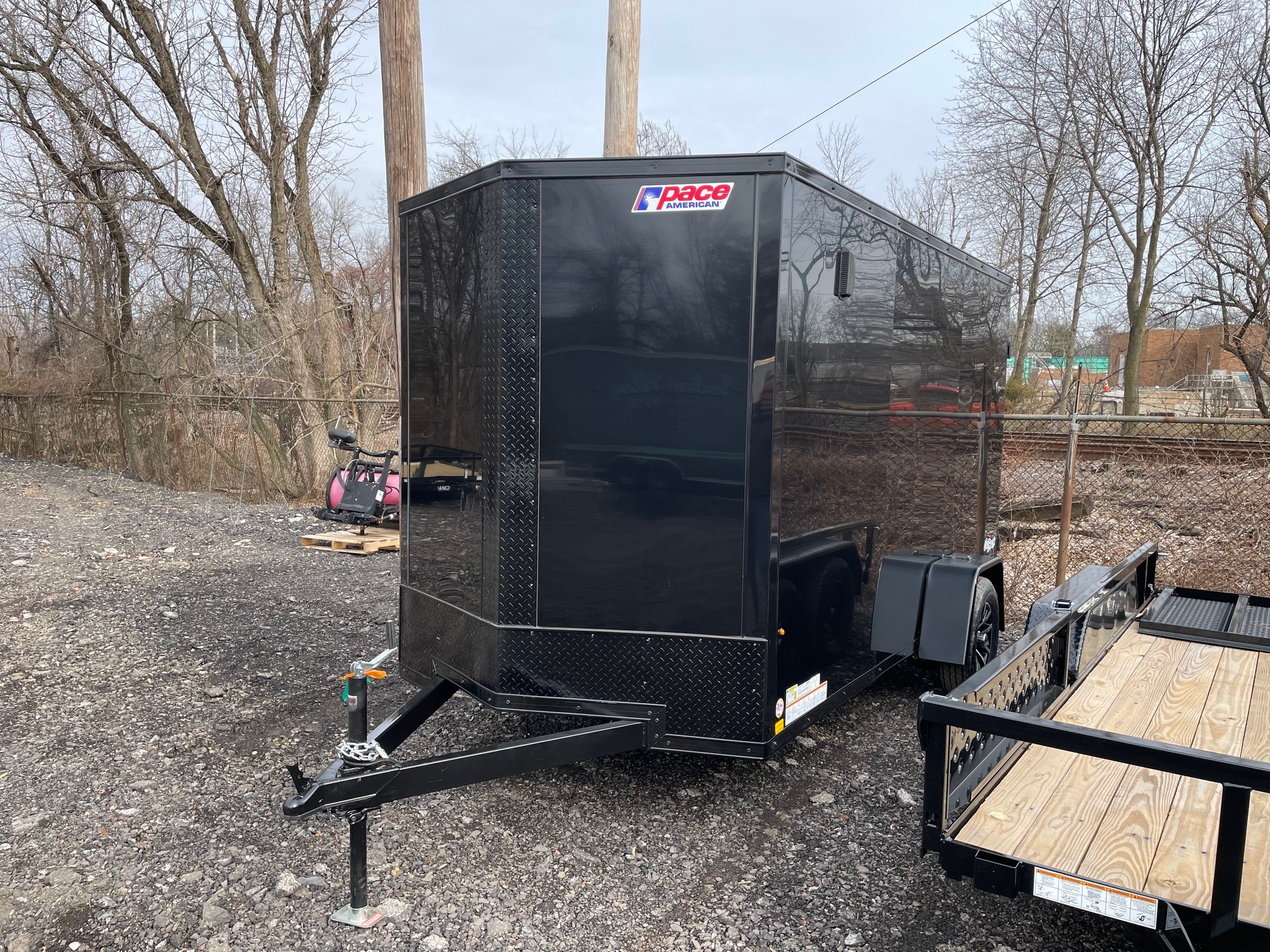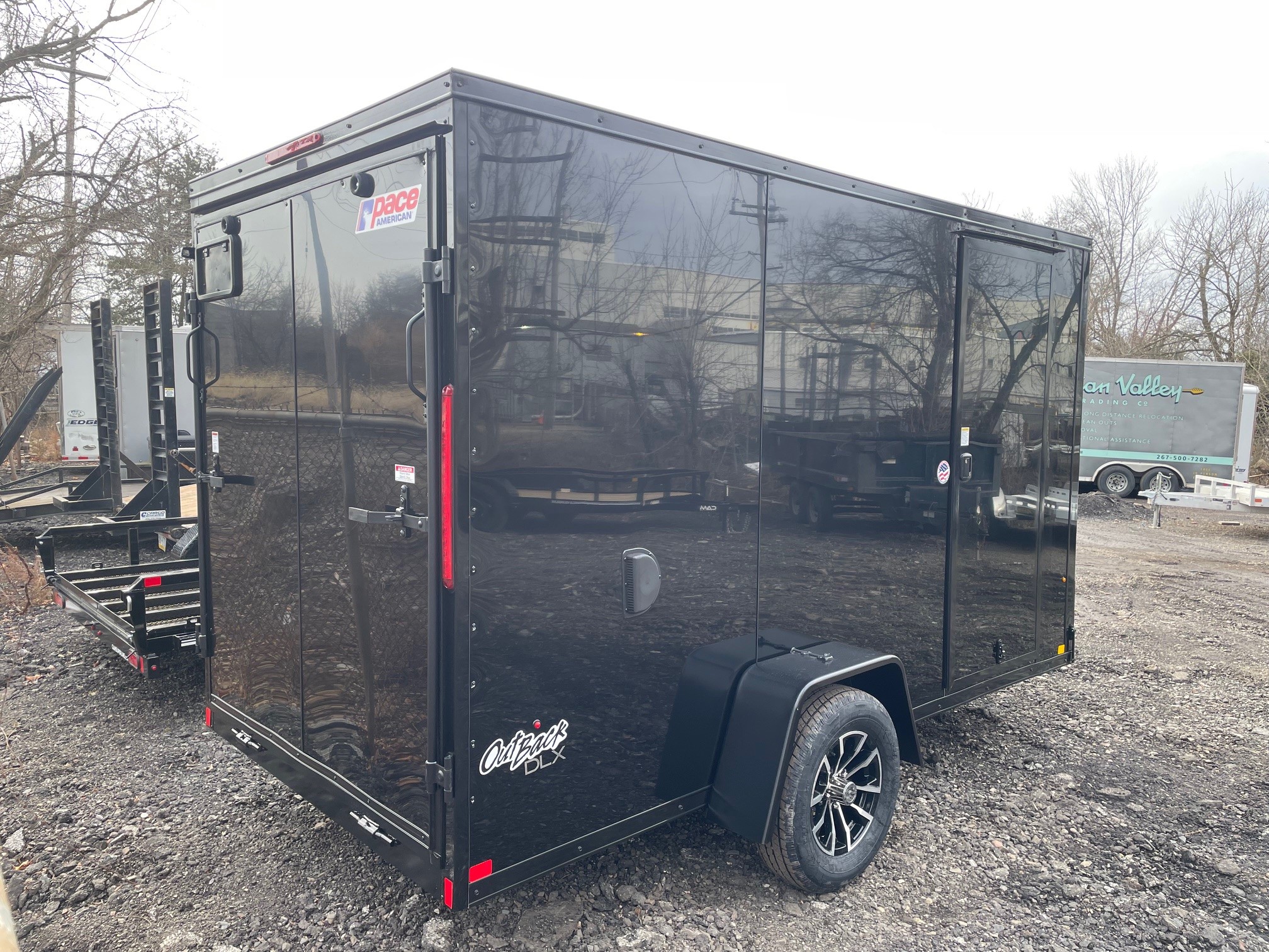 The Outback DLX is our Entry level model from Pace American. It’s great for lighter duty use which makes it a great fit for homeowners and other light duty applications. The Outback has standard features such as 24” on center framing, 0.030 exterior aluminum, color matching exterior screws, a one piece roof and a 3 year warranty. The Outback is our economical, yet reliable enclosed trailer offering to keep you on the road without breaking the bank. 6x12+2, Black with Black Trim, Pace American Outback DLX, Side Door, Ramp Door, 7' Interior Height, Upgraded Composite Exterior, Upgraded 16" OC Tube Wall Posts, Aluminum Wheels, GVWR-2990#, Empty-1502#