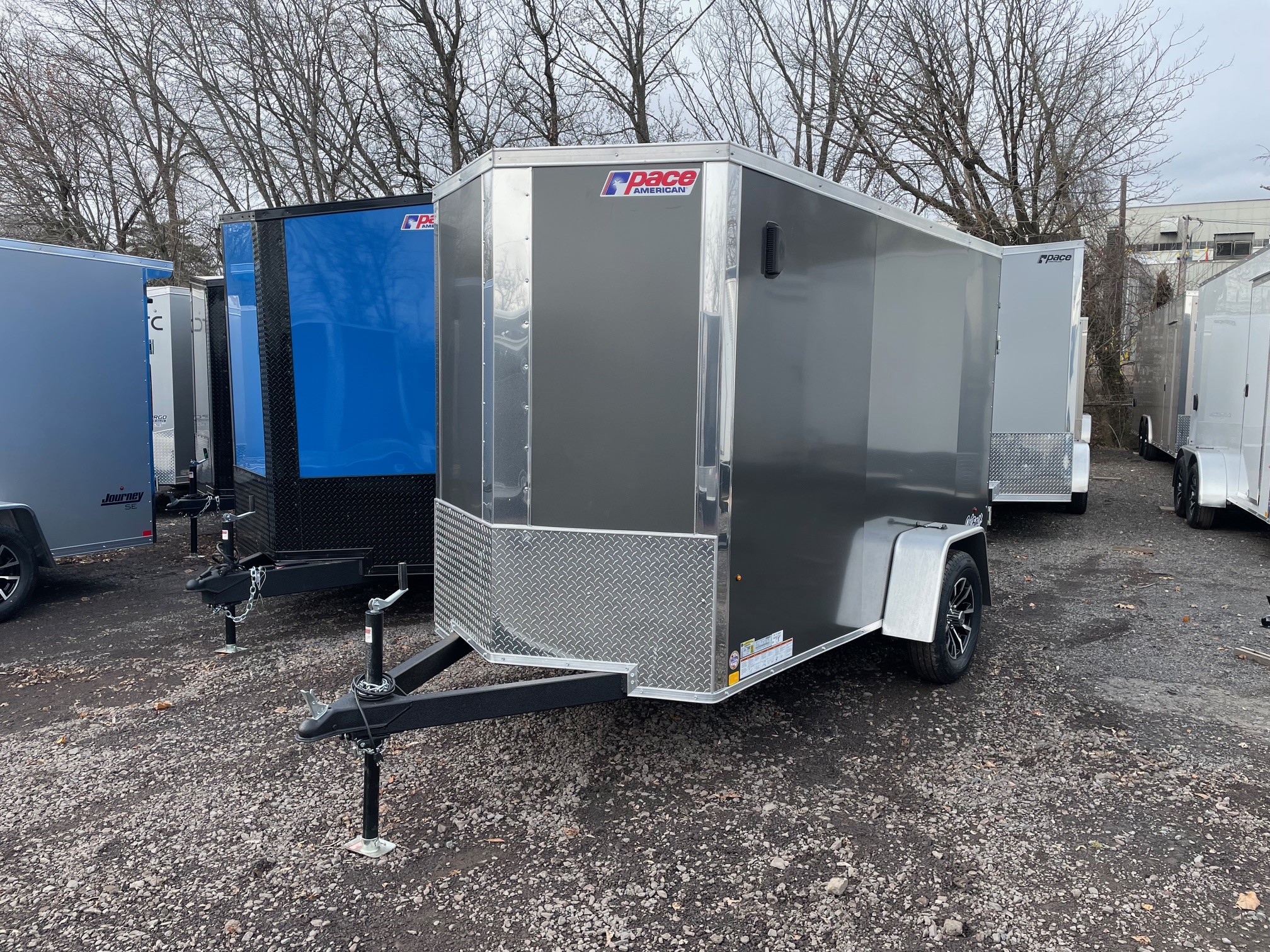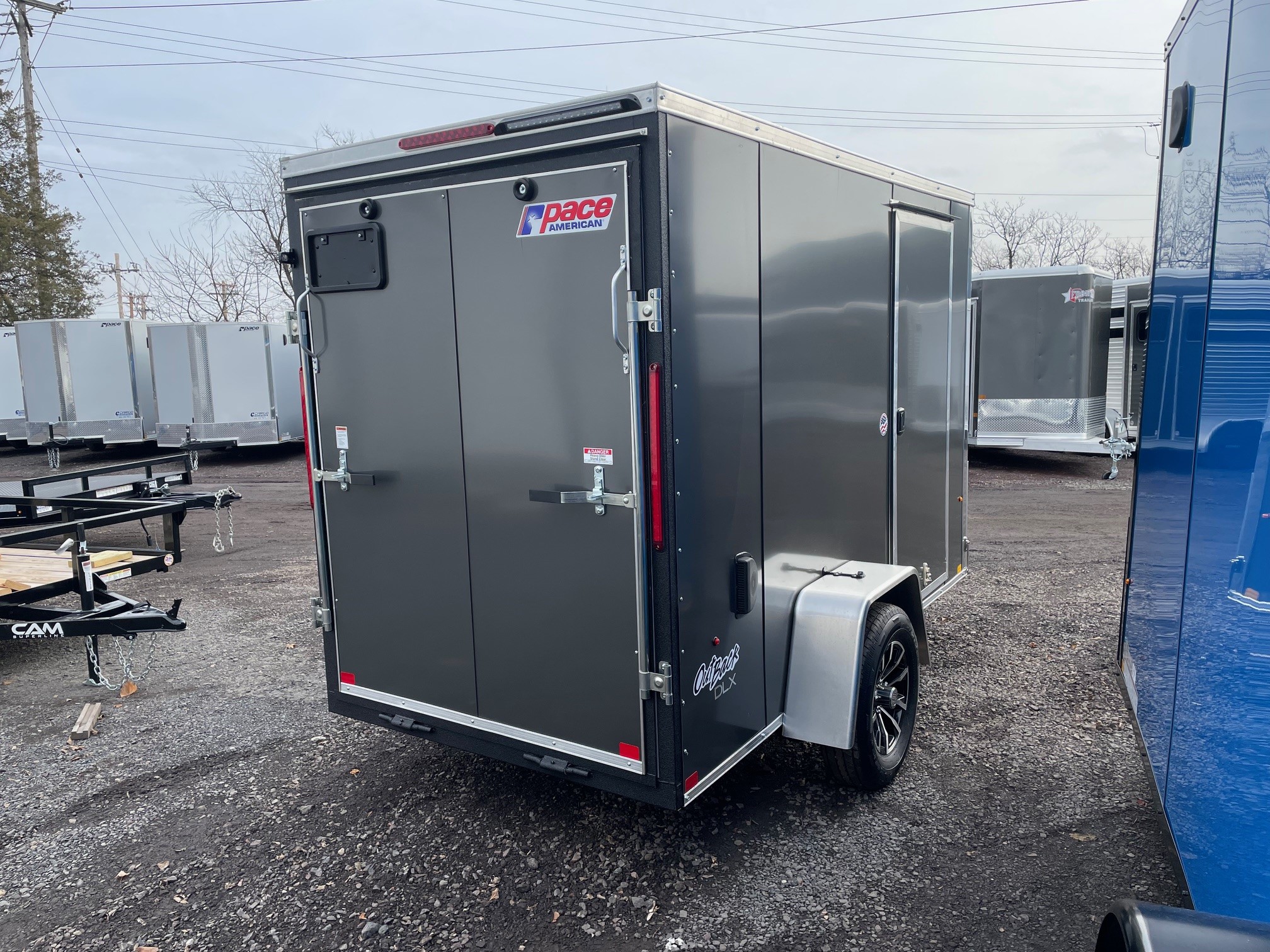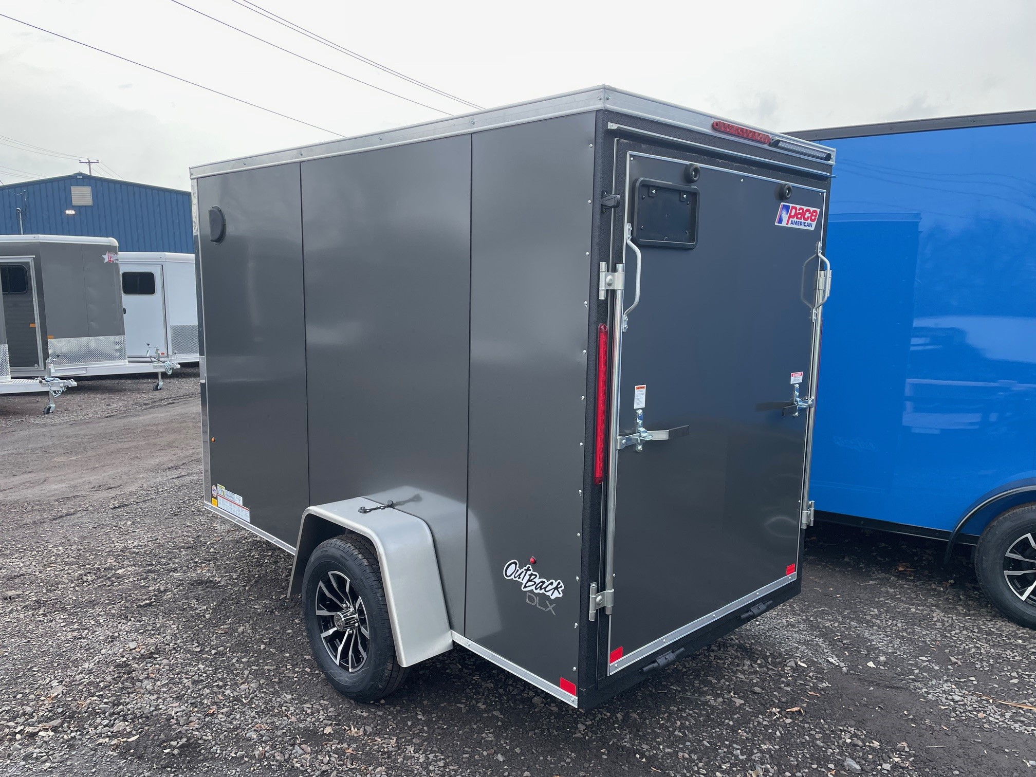 The Outback DLX is our Entry level model from Pace American. It’s great for lighter duty use which makes it a great fit for homeowners and other light duty applications. The Outback has standard features such as 24” on center framing, 0.030 exterior aluminum, color matching exterior screws, a one piece roof and a 3 year warranty. The Outback is our economical, yet reliable enclosed trailer offering to keep you on the road without breaking the bank. 5x10+2, 2026 Pace American Outback DLX, Charcoal, 6' Interior Height, Side Door, Loading Light Aluminum Wheels, GVWR-2990#, Empty-1303#