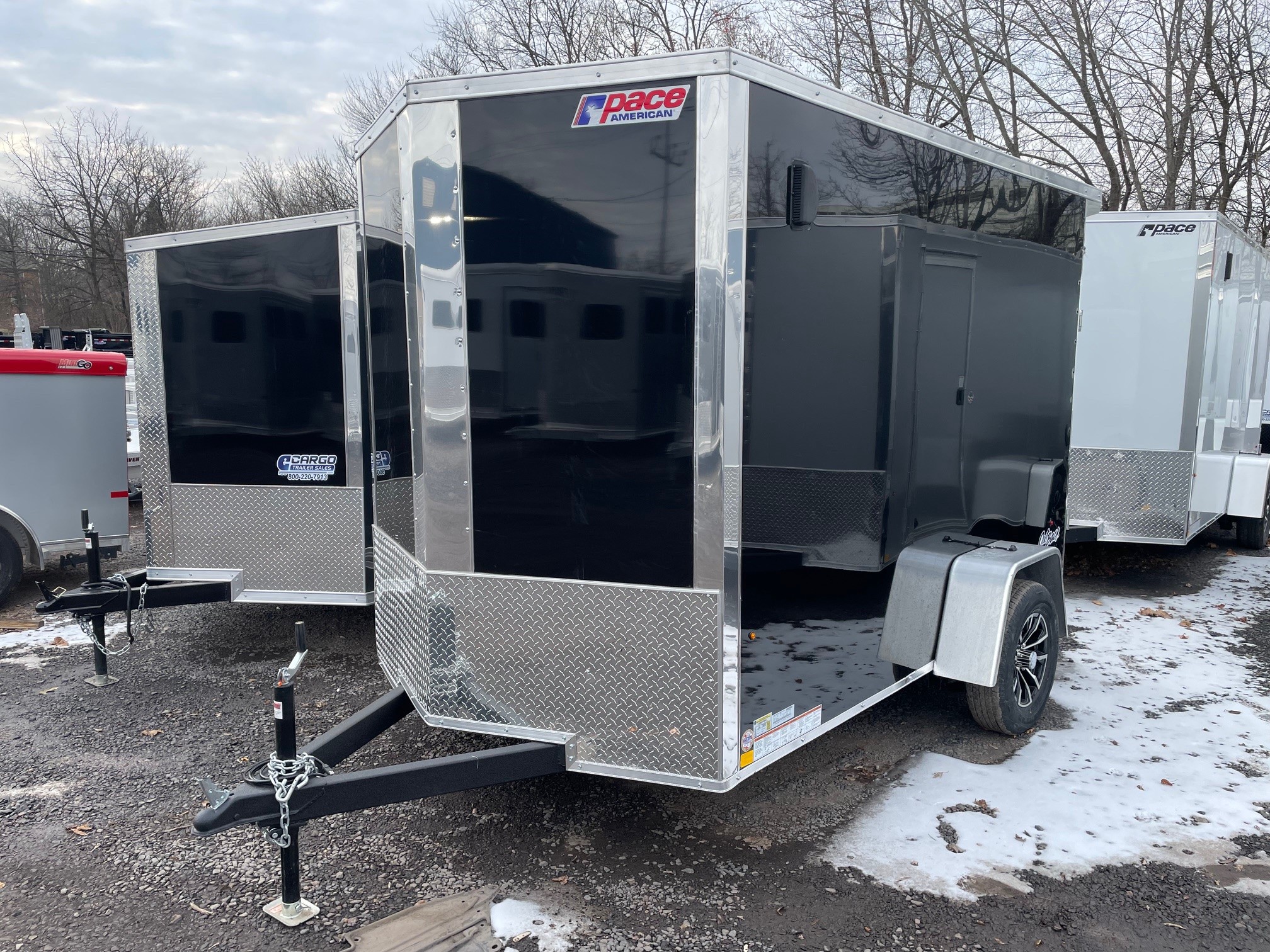 The Outback DLX is our Entry level model from Pace American. It’s great for lighter duty use which makes it a great fit for homeowners and other light duty applications. The Outback has standard features such as 24” on center framing, 0.030 exterior aluminum, color matching exterior screws, a one piece roof and a 3 year warranty. The Outback is our economical, yet reliable enclosed trailer offering to keep you on the road without breaking the bank. 6x10+2, 2026 Pace American Outback DLX, Upgraded from 0.030 side sheets to 0.080 Black composite Exterior. 6.5' Interior Height, Aluminum Wheels, Rear Flare With Loading Light, GVWR-2990#, Empty-1408#
