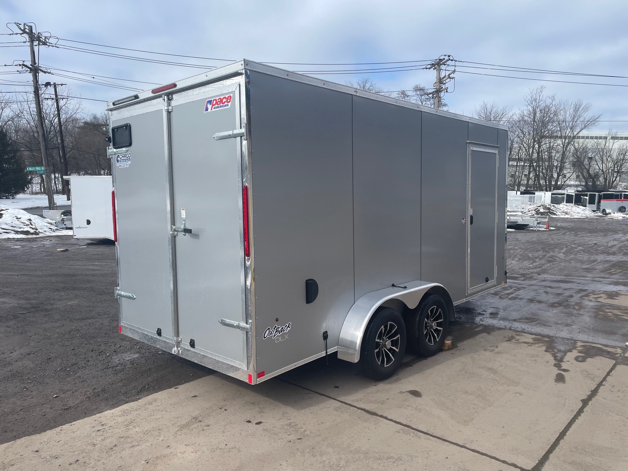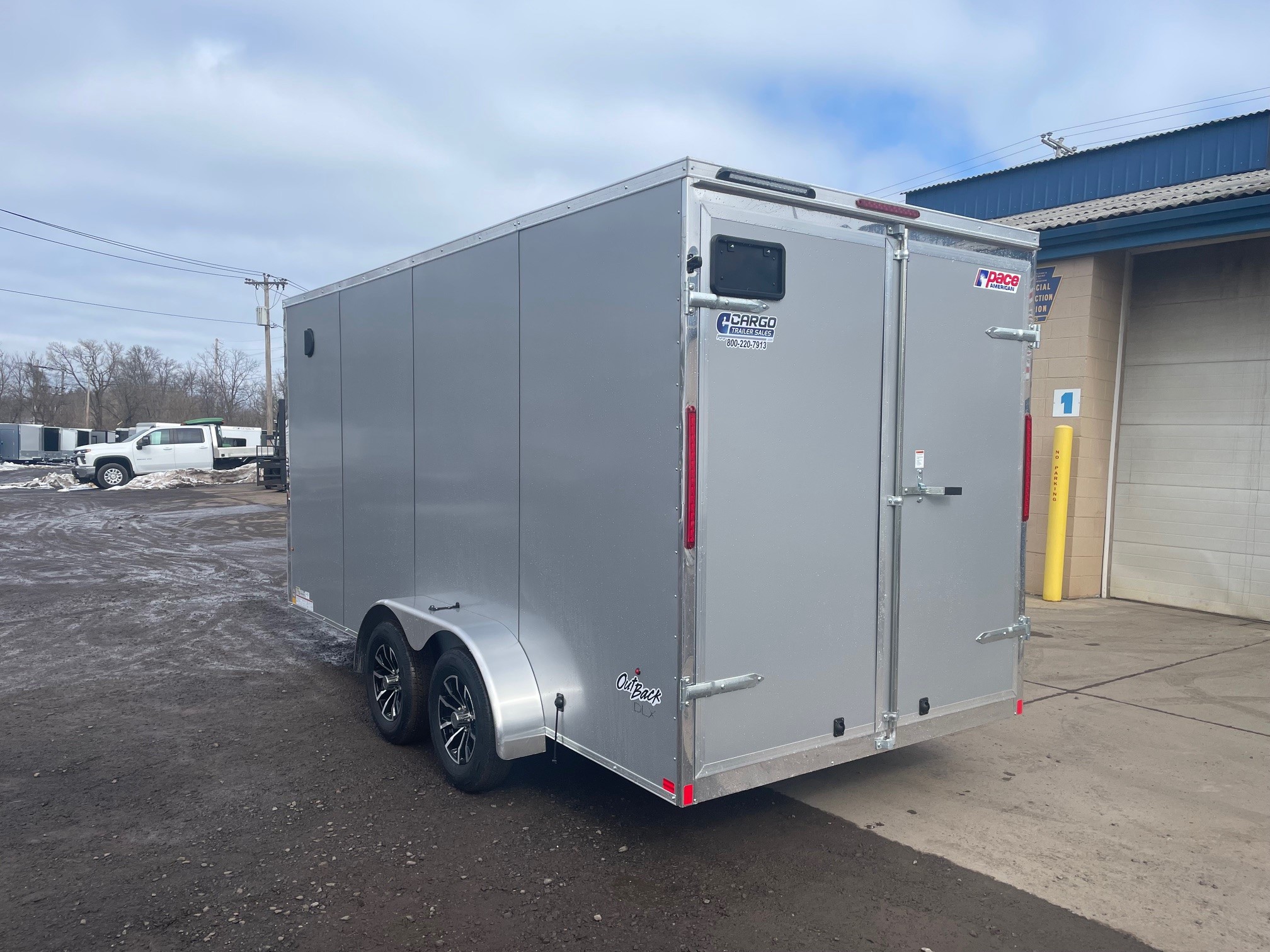 The Outback DLX is our Entry level model from Pace American. It’s great for lighter duty use which makes it a great fit for homeowners and other light duty applications. The Outback has standard features such as 24” on center framing, 0.030 exterior aluminum, color matching exterior screws, a one piece roof and a 3 year warranty. The Outback is our economical, yet reliable enclosed trailer offering to keep you on the road without breaking the bank. 7x16+2, Silver, 2026 Pace American Outback DLX, Double Barn Doors at Rear, Side Door, Upgraded 16" OC Wall Posts, Aluminum Wheels, Composite Exterior, LED Rear Loading Light, GVWR-7000#, Empty-2258#