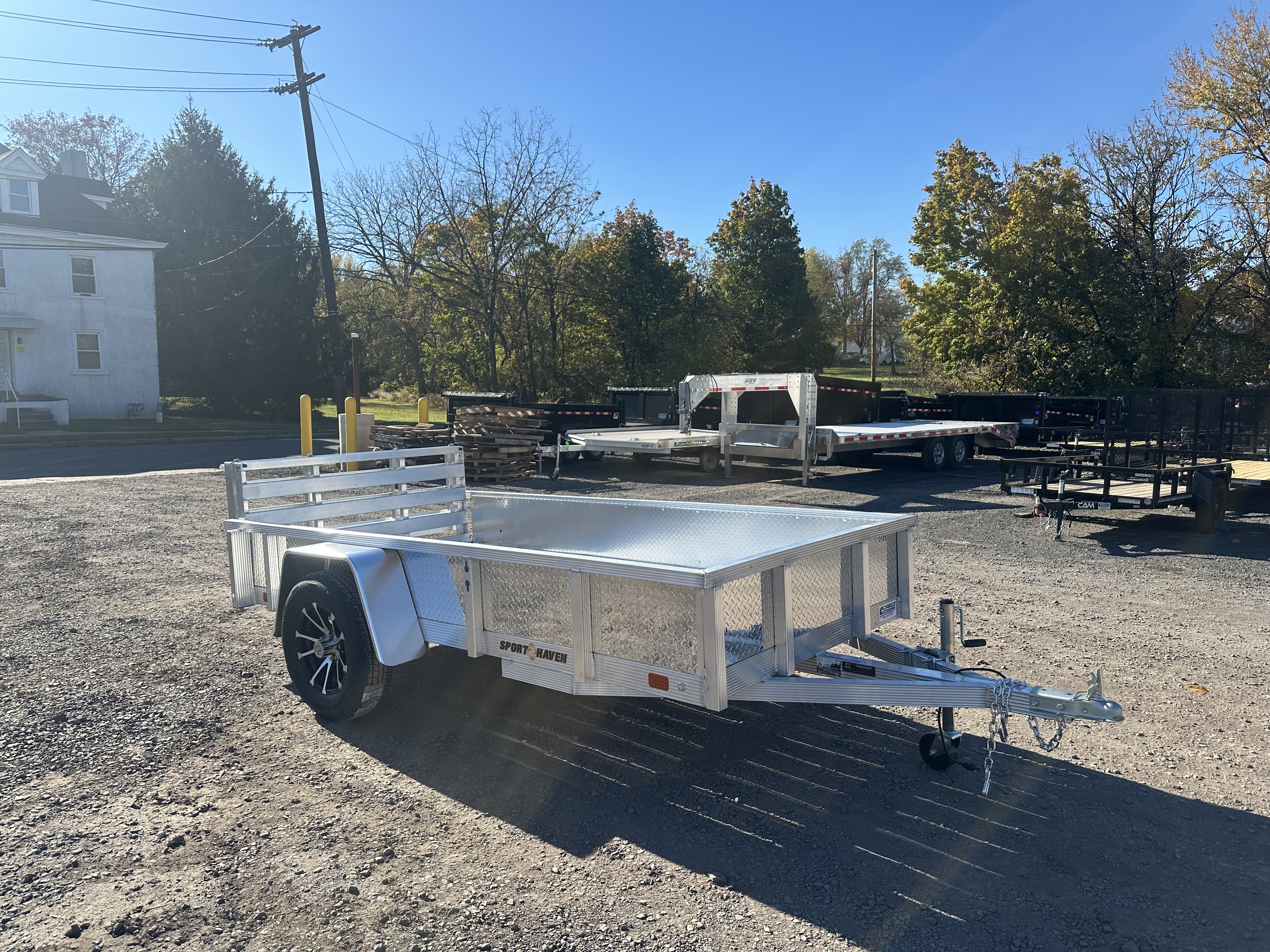 5x10, 2026 Sport Haven Aluminum Deluxe Utility Trailer, ATP Solid Sides, Bi Fold Rear Ramp, LED Lights, Swing Up Jack w/ Wheel, Integrated Tie Down Rail With 4 Removable D-Rings, Dexter Torsion Axle, Radial Tires, Aluminum Wheels