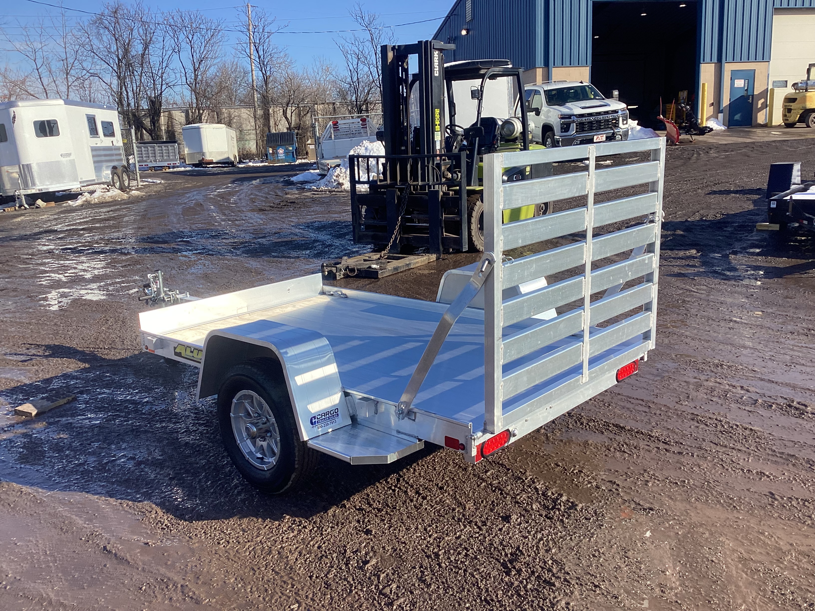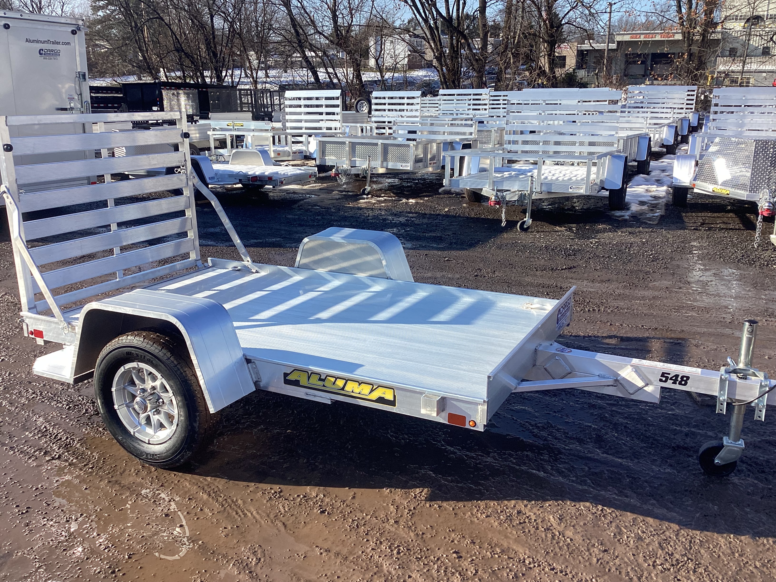 54"x8' Aluma, 2027 Utility Trailer, 2K Axle, Fender Steps, Aluminum Wheels, LED Lights, (4) Tie Loops, (4) Stake Pockets, GVWR-2000#, Empty-390#